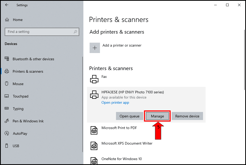 Steps 3 and 4: Choose Printers and Scanners from the lefthand menu, then click on your printer.