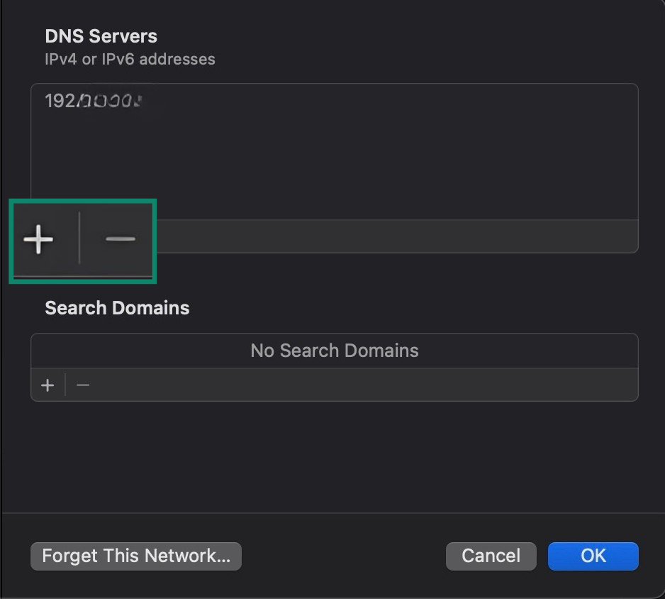 5. Click Add Server and enter the IPv4 or IPv6 address you want.Only use trusted DNS servers as they may be able to see the internet requests you make.