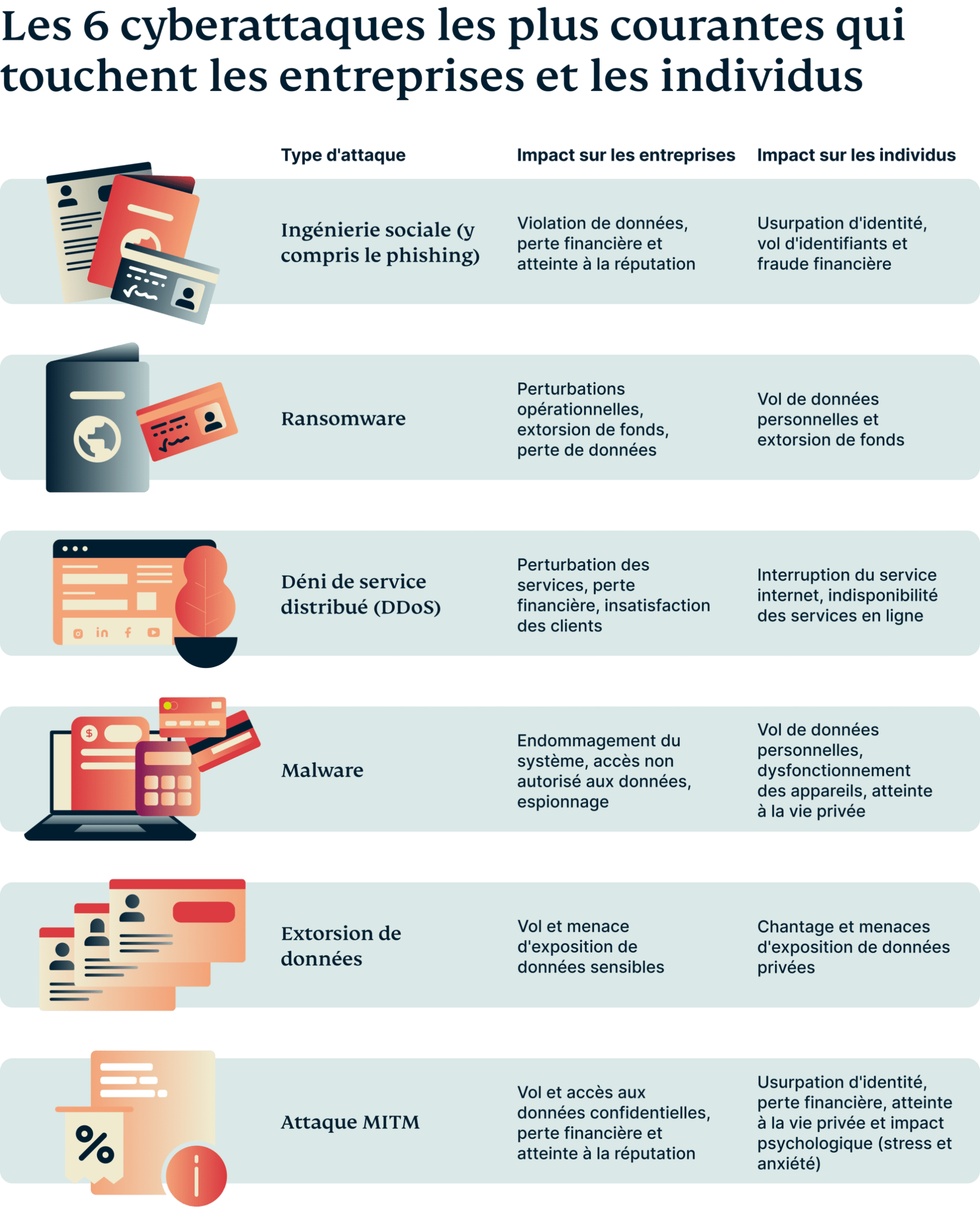 Il est important de comprendre l'impact des cyberattaques dans divers secteurs d’activité pour pouvoir les combattre. Nous examinons ici les principales techniques des cybercriminels, leur mode opératoire, ainsi que les conséquences des cyberattaques sur les entreprises et les individus