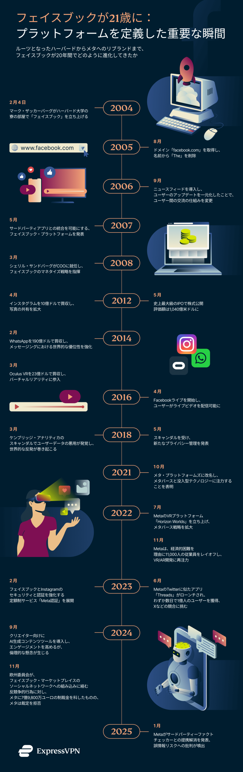 Facebook(フェイスブック)がついに21歳になりました。米国では21歳でお避けが飲めるため、ある意味成熟の証とも言えます。しかし、この節目を迎えた今、Facebookの存在意義やソーシャルメディア界での役割について、これまで以上に疑問の声が上がっています。Facebookは今でもつながりやシェアの中心的なプラットフォームなのでしょうか?それとも、ThreadsやInstagramといったトレンドのプラットフォームに取って代わられてしまったのでしょうか?