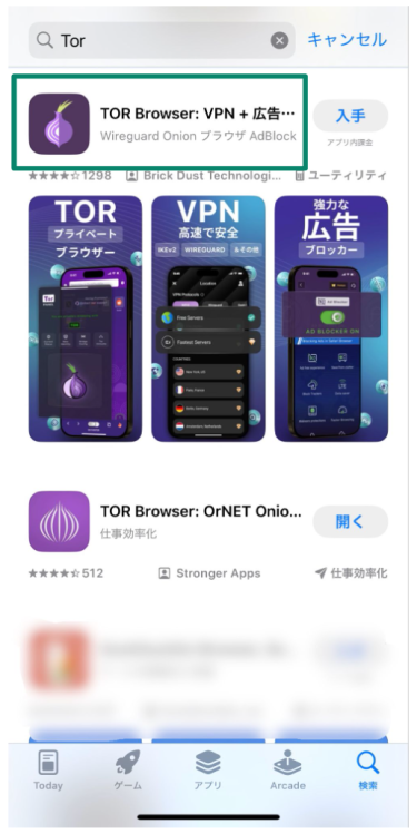 1. Tor Projectが推奨するOnion BrowserをApp Storeからダウンロードしましょう。