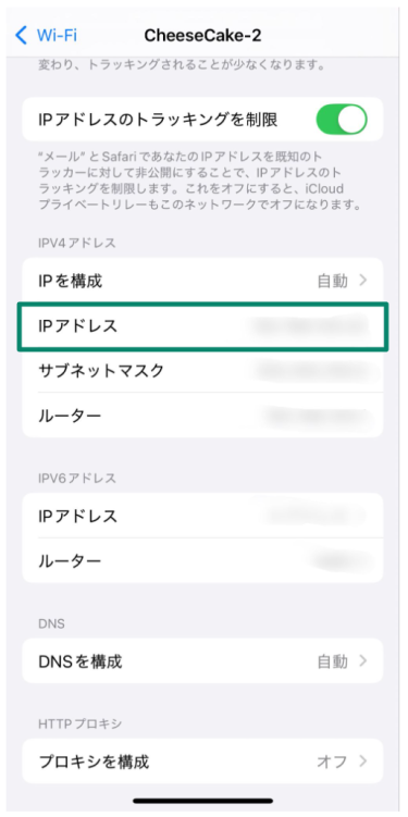 3. 接続ボタンを押すと、iPhoneのIPアドレスが変わります。