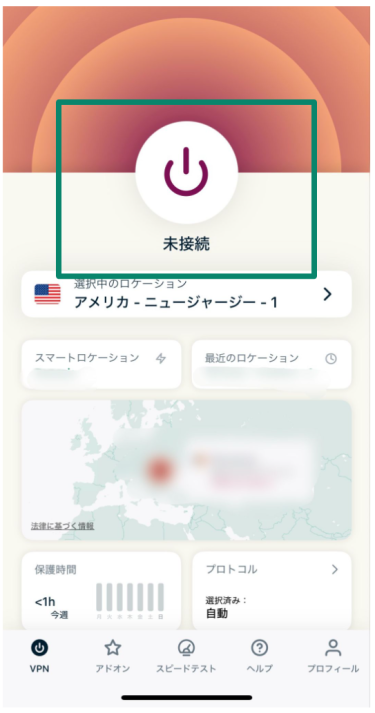 2. アプリを開き、電源ボタンをタップすると接続されます。