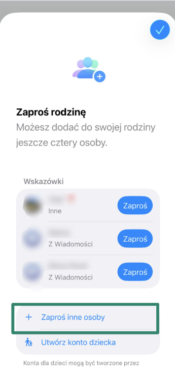 4. Jeśli Twoje dziecko ma już konto Apple, stuknij Zaproś innych, aby zaprosić je do grupy rodzinnej.