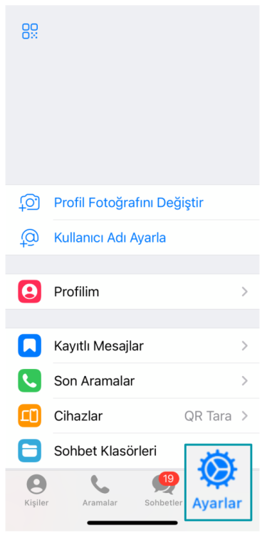 1. Telegram uygulamasında, sağ alt köşedeki Ayarlar sekmesine dokunun.