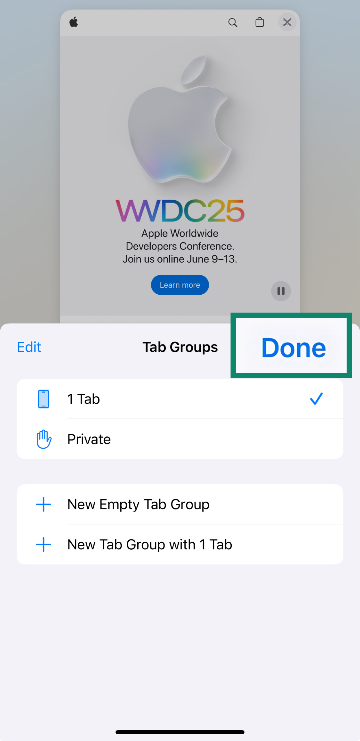 - Tap [number] Tabs or Start Page to see the list of Tab Groups.