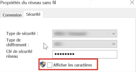 3. Allez dans l'onglet Sécurité et cochez la case Afficher les caractères.