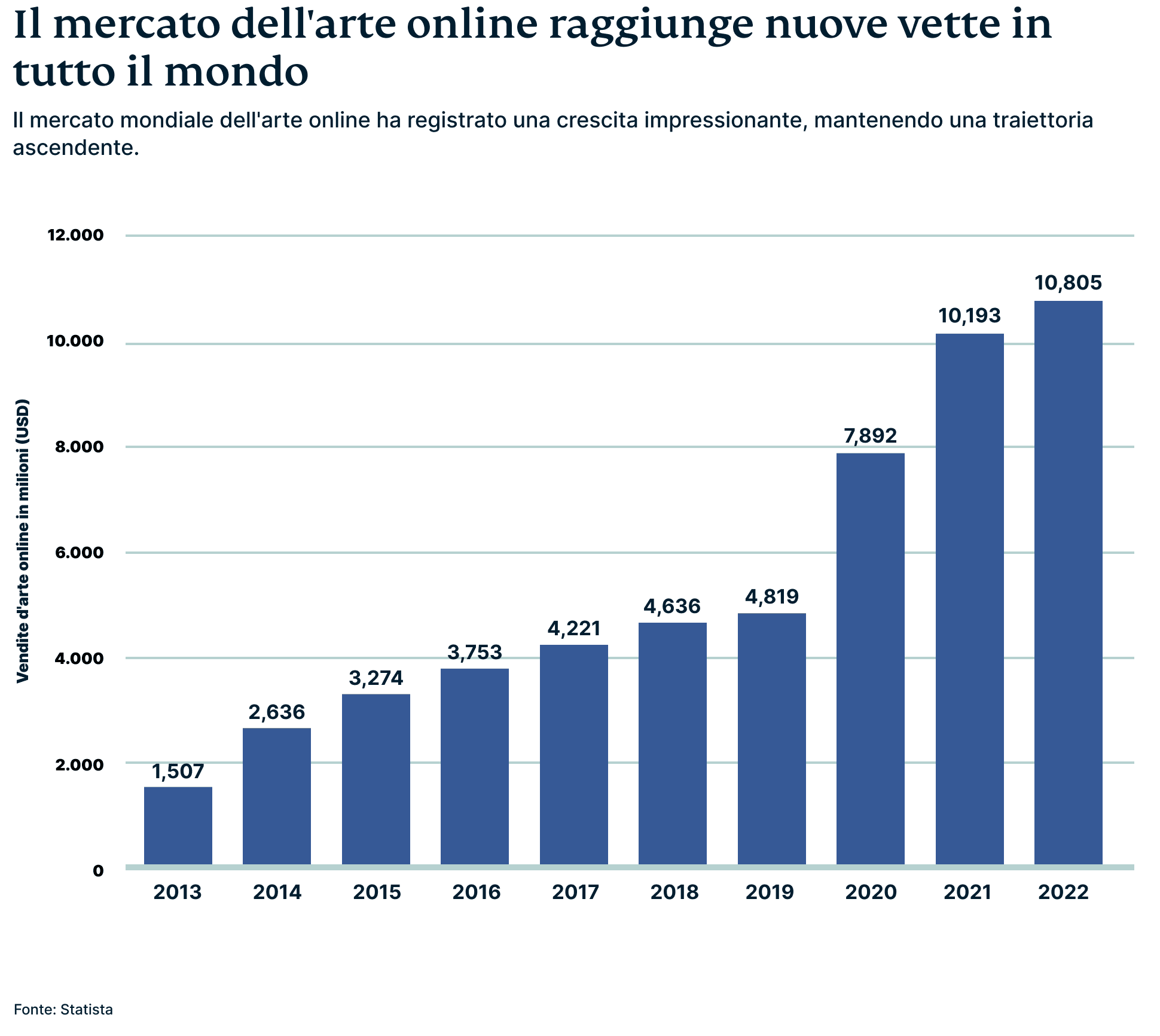 Anche l'investimento in opere d'arte può essere un modo proficuo per diversificare un portafoglio e generare rendimenti elevati. Solo nel 2022, le belle arti hanno superato le altre classi di investimento in prodotti da collezione, registrando un'impressionante impennata del 29%. La vendita di opere d'arte ha inoltre generato un valore di ben 10,8 miliardi di dollari attraverso le vendite online.