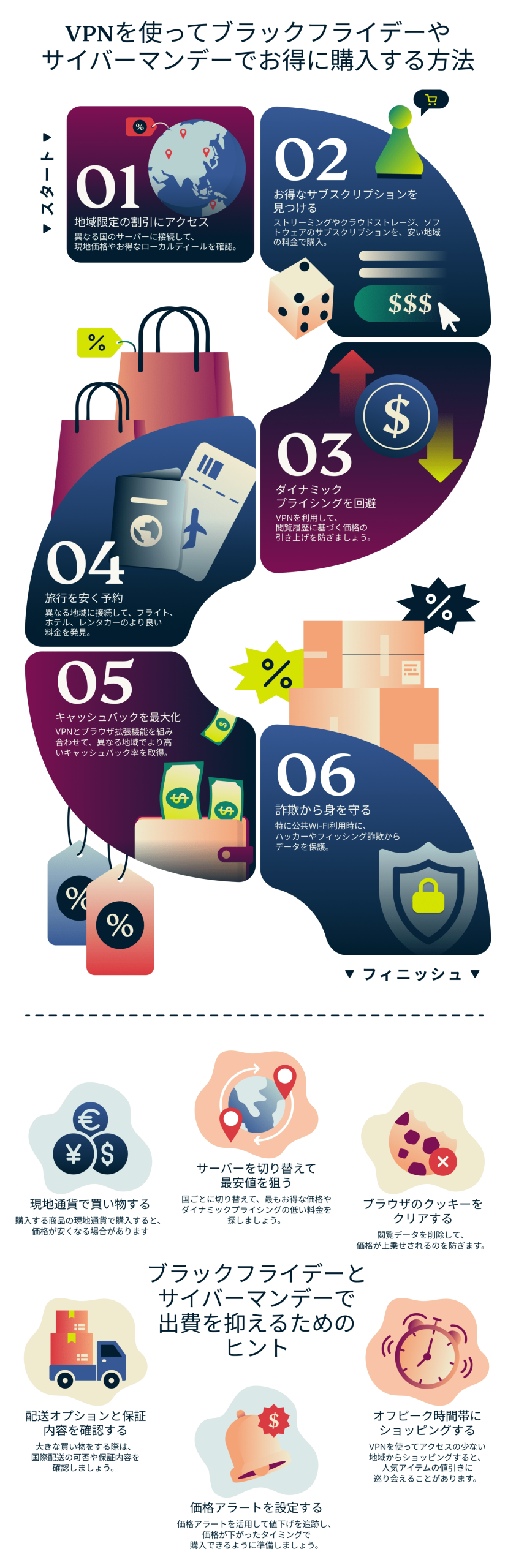 • ブラックフライデーとサイバーマンデーにVPNを活用しましょう