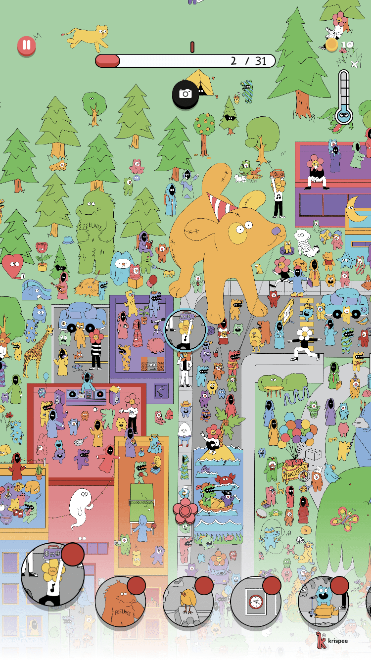 「大人気ウェブ漫画の世界観に基づいた、心に優しい探し物ゲーム。ちょっと変わっているけど不思議と癒される、いろいろなキャラクターやアイテムを見つけ出そう」
