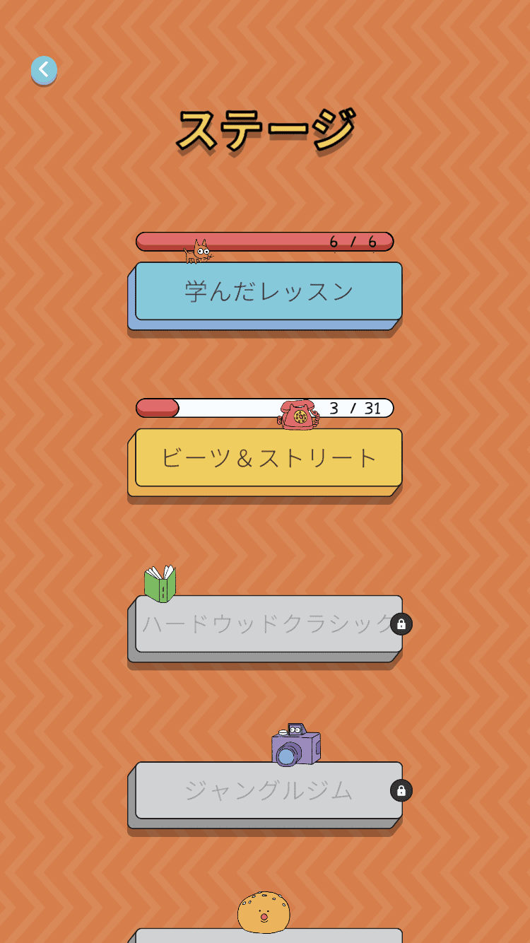 ゲーム画面に進む前に、実際の遊び方を学ぶための説明を受けます。その後、各ステージが画面に表示されます。「ビーツ&ストリート」をタップして開始しましょう。