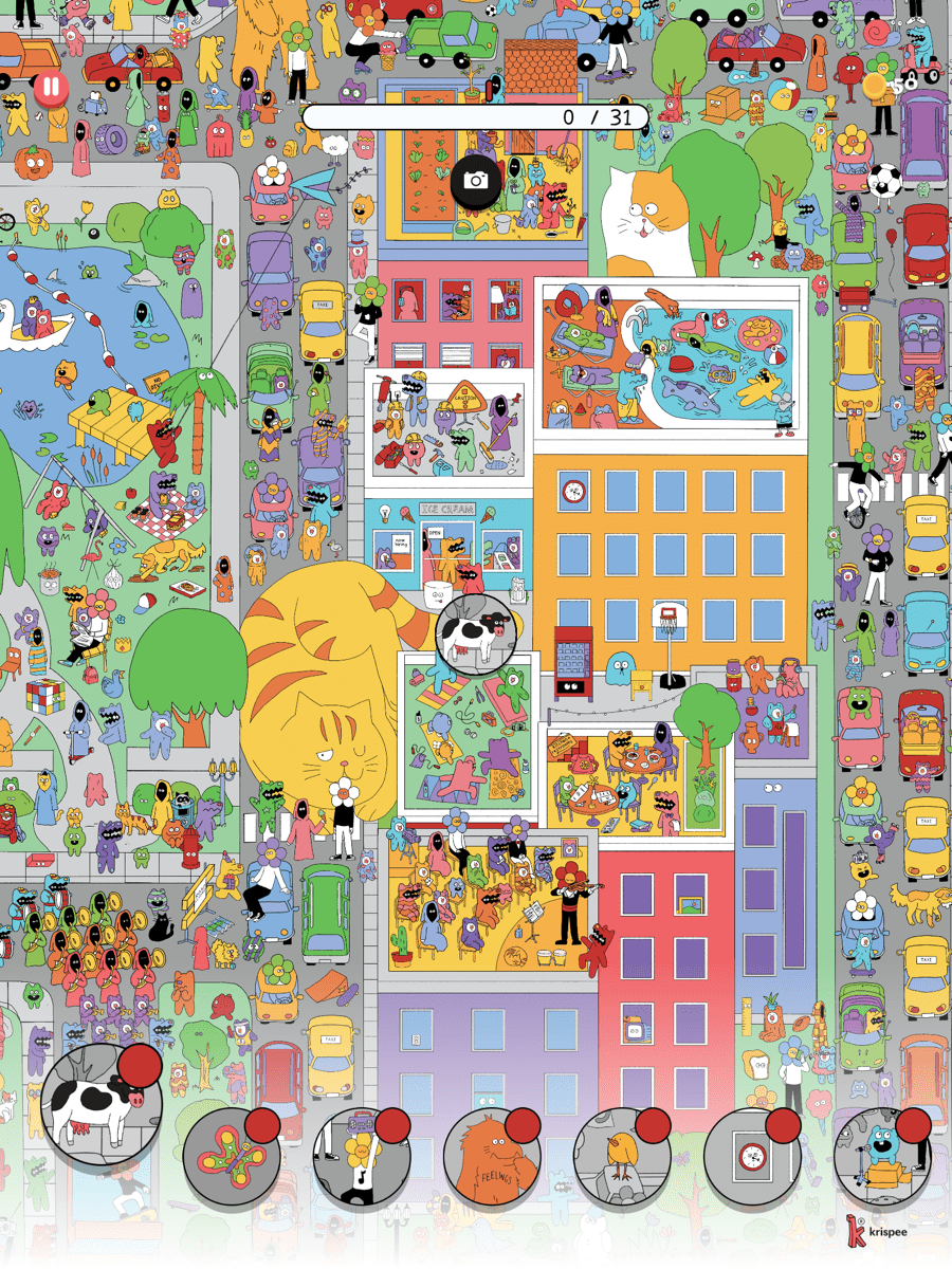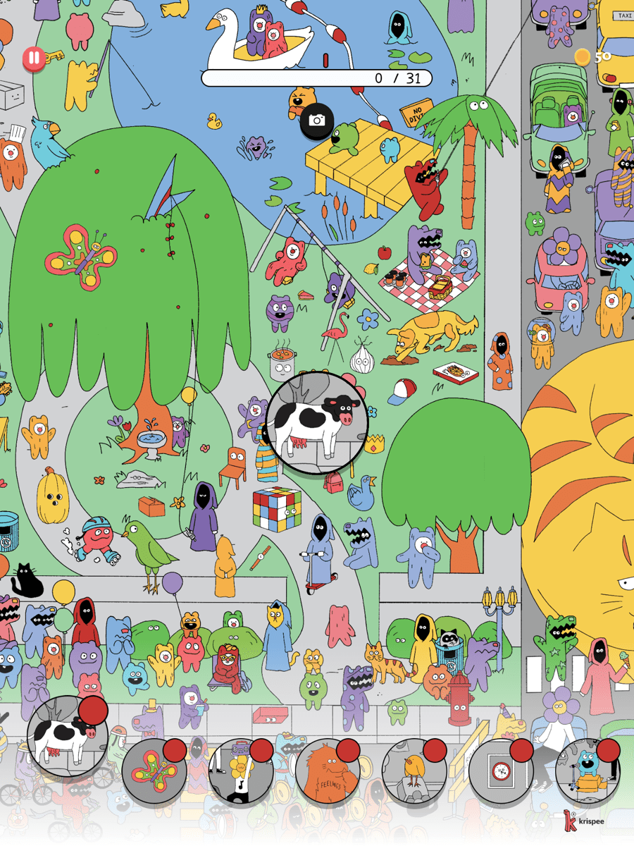 「大人気ウェブ漫画の世界観に基づいた、心に優しい探し物ゲーム。ちょっと変わっているけど不思議と癒される、いろいろなキャラクターやアイテムを見つけ出そう」