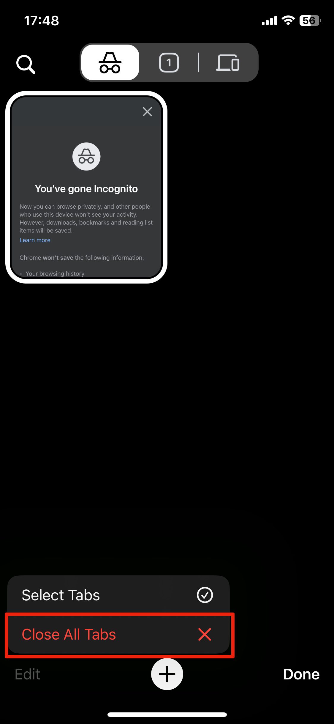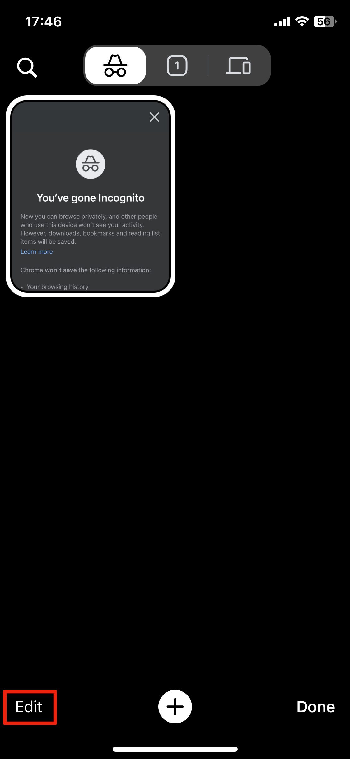 iOS 17のGoogle Chromeでシークレットモードを解除する