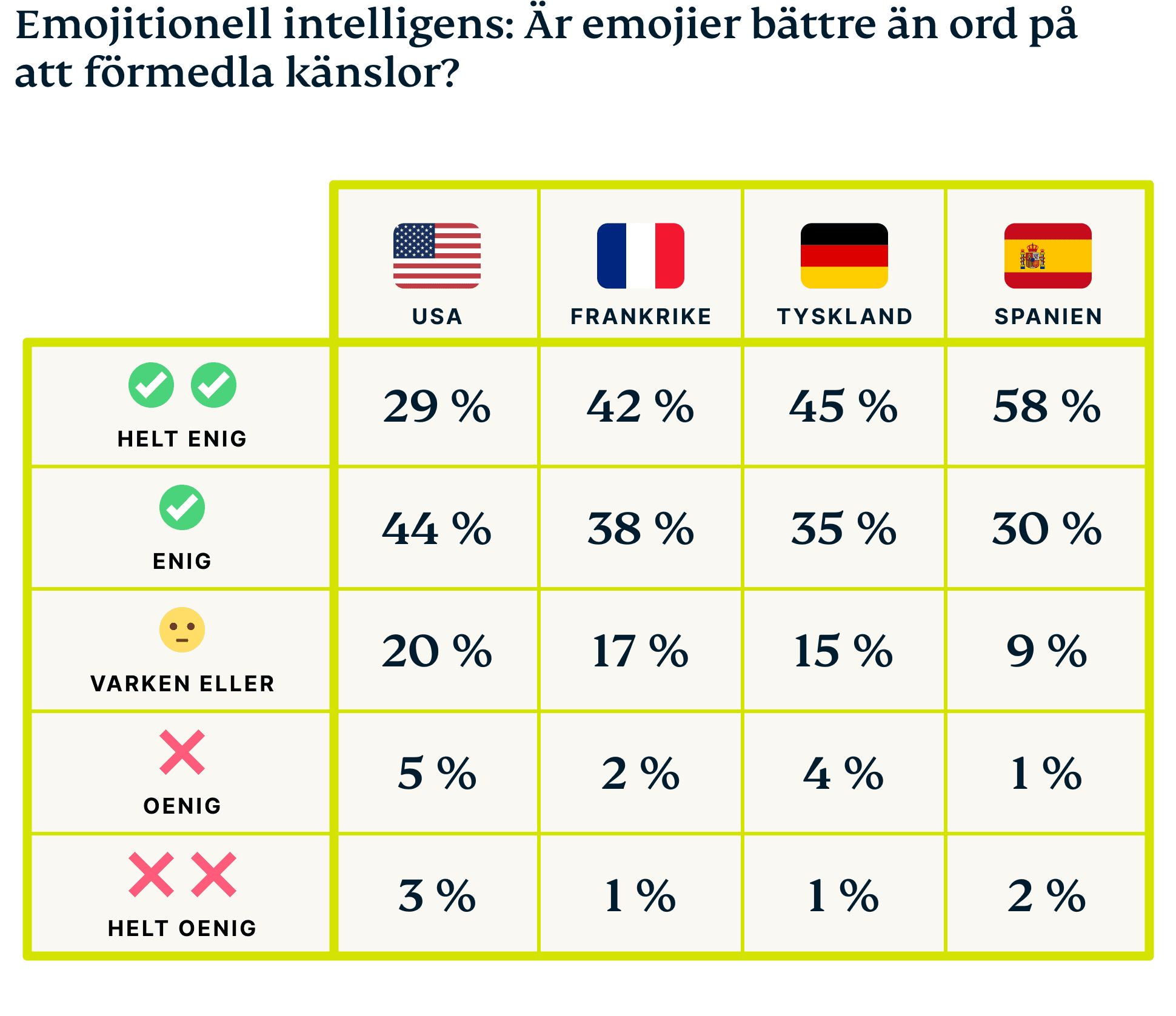 För att uppmärksamma World Emoji Day 🌎 har vi gjort undersökningar bland boende i Frankrike, Tyskland, Spanien och USA för att bättre förstå vad emojier har för inverkan på våra liv.